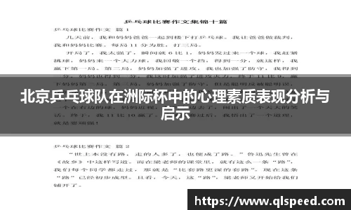 本文主要分析了北京乒乓球队在洲际杯中的心理素质表现,探讨其在比赛中的心理状态及其对战绩的影响。通过对运动员的心理承受能力、团队协作精神、应变能力以及压力管理等四个方面的深入分析,我们能够更好地理解北京乒乓球队在国际赛事中所展现出的优秀心理素质。同时,文章还提出了一些对其他运动队伍和运动员的启示,希望...